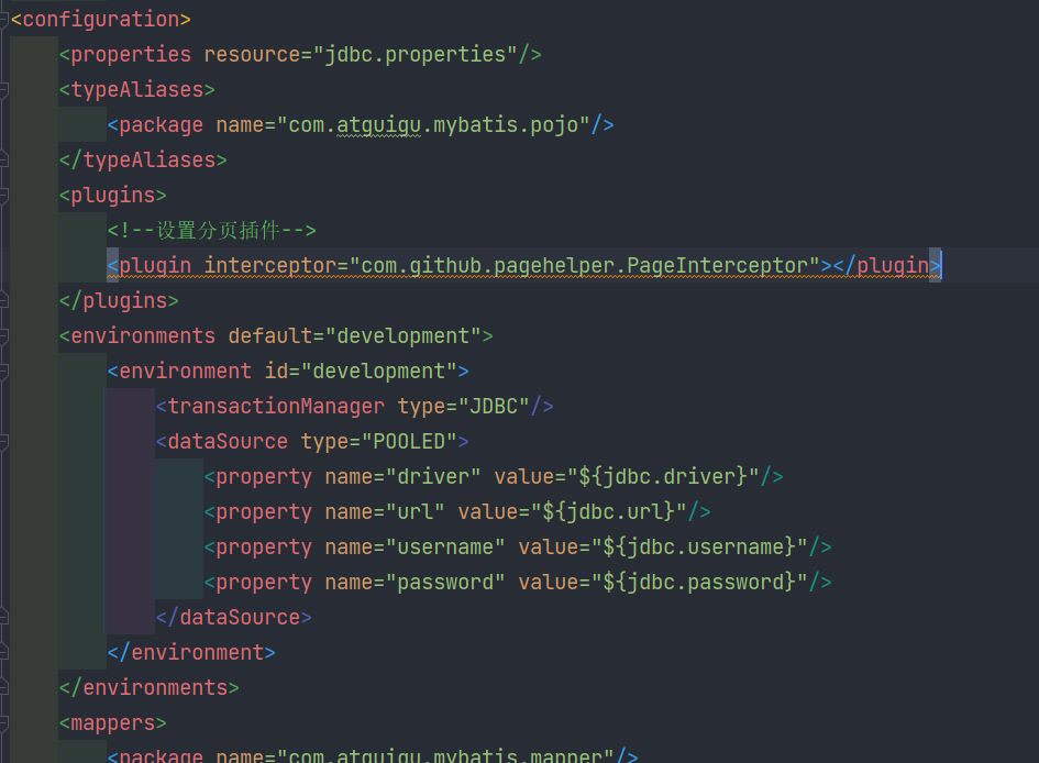 - 在 MyBatis 的核心配置文件(mybatis-config.xml)中配置插件